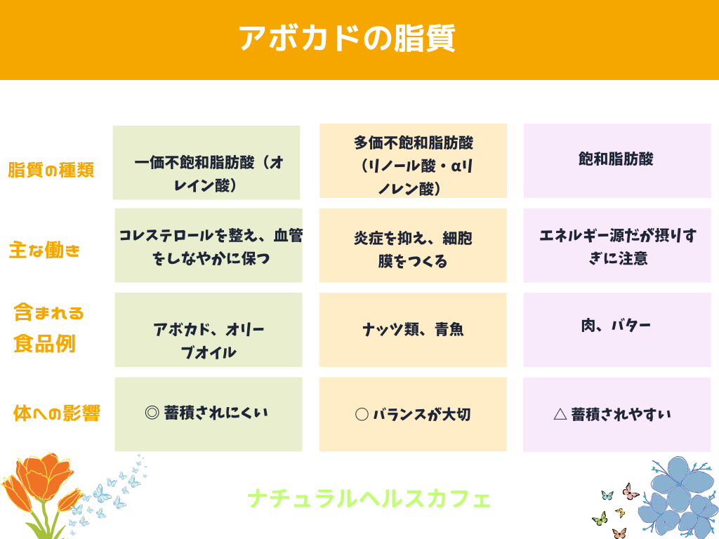 アボカドに含まれる脂質の種類
