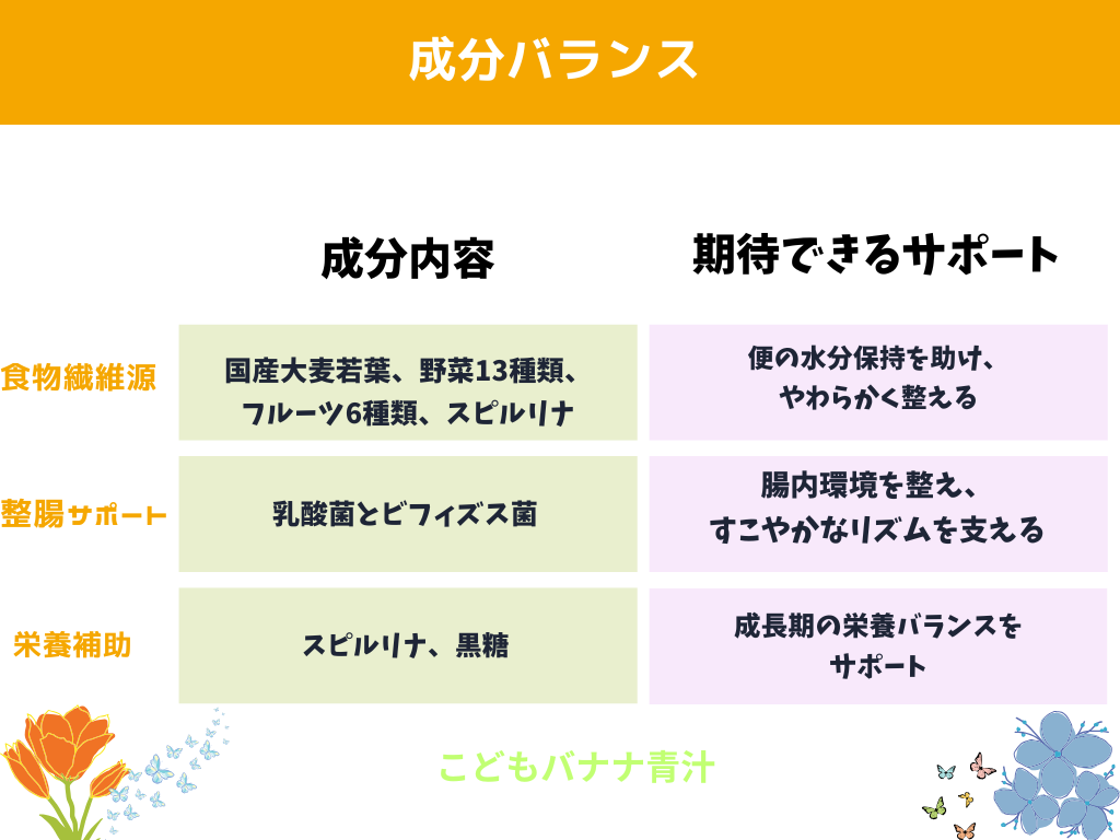 頑張らずに続けられることが、いちばんの整え方。日々の暮らしに「こどもバナナ青汁」を上手に取り入れて、心と体のリズムをやさしく支えていきましょう。