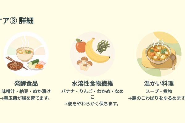 完璧な献立を目指す必要はありません。食べられるひと口の中に、腸を助ける要素をひとつ足す。それだけで十分です。